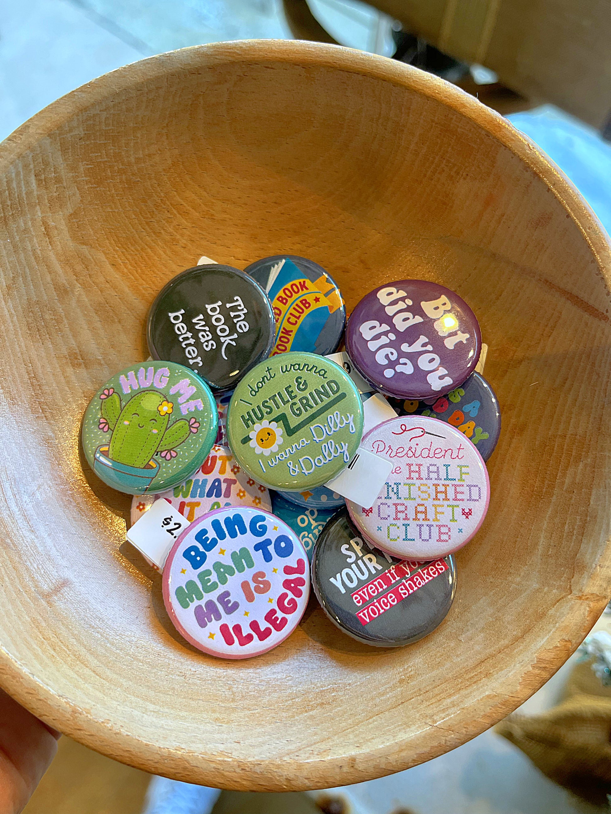 Add a touch of humor and encouragement to your style with our Button Pins. These versatile accessories can be easily pinned onto any bag or jacket for a fun and unique look. With a variety of funny sayings to choose from, your personality is sure to shine through!