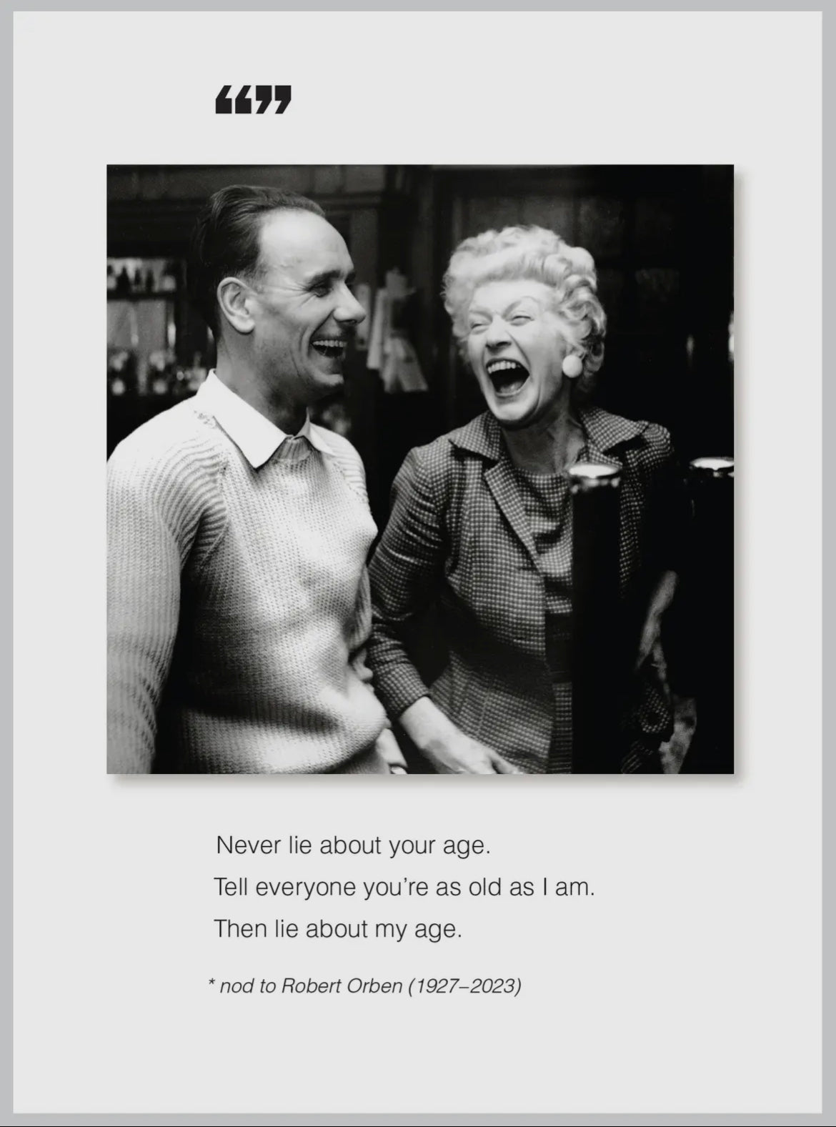 Outside: “Never lie about your age. Tell everyone you’re as old as I am. The lie about my age. - nod to Robert Orben (1927-2023)